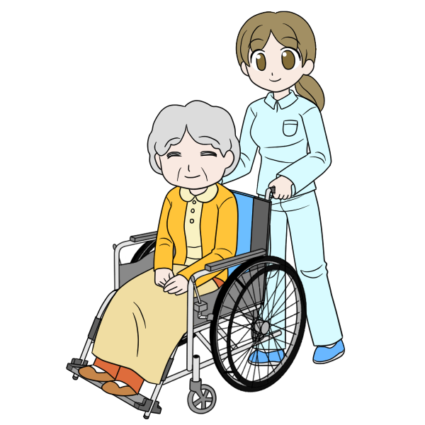 車椅子に乗る人と介護者